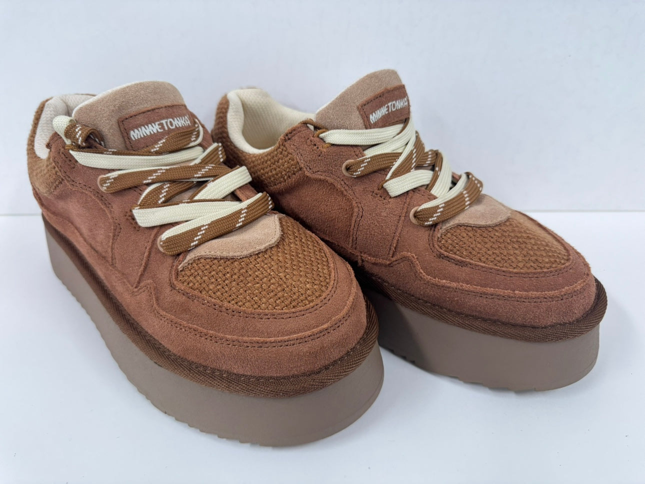 クラシックな風合いとトレンド感を両立した、MINNETONKAの厚底スニーカー。やわらかなスエード素材とメッシュのコンビネーションが、ナチュラルで洗練された印象を演出します。
