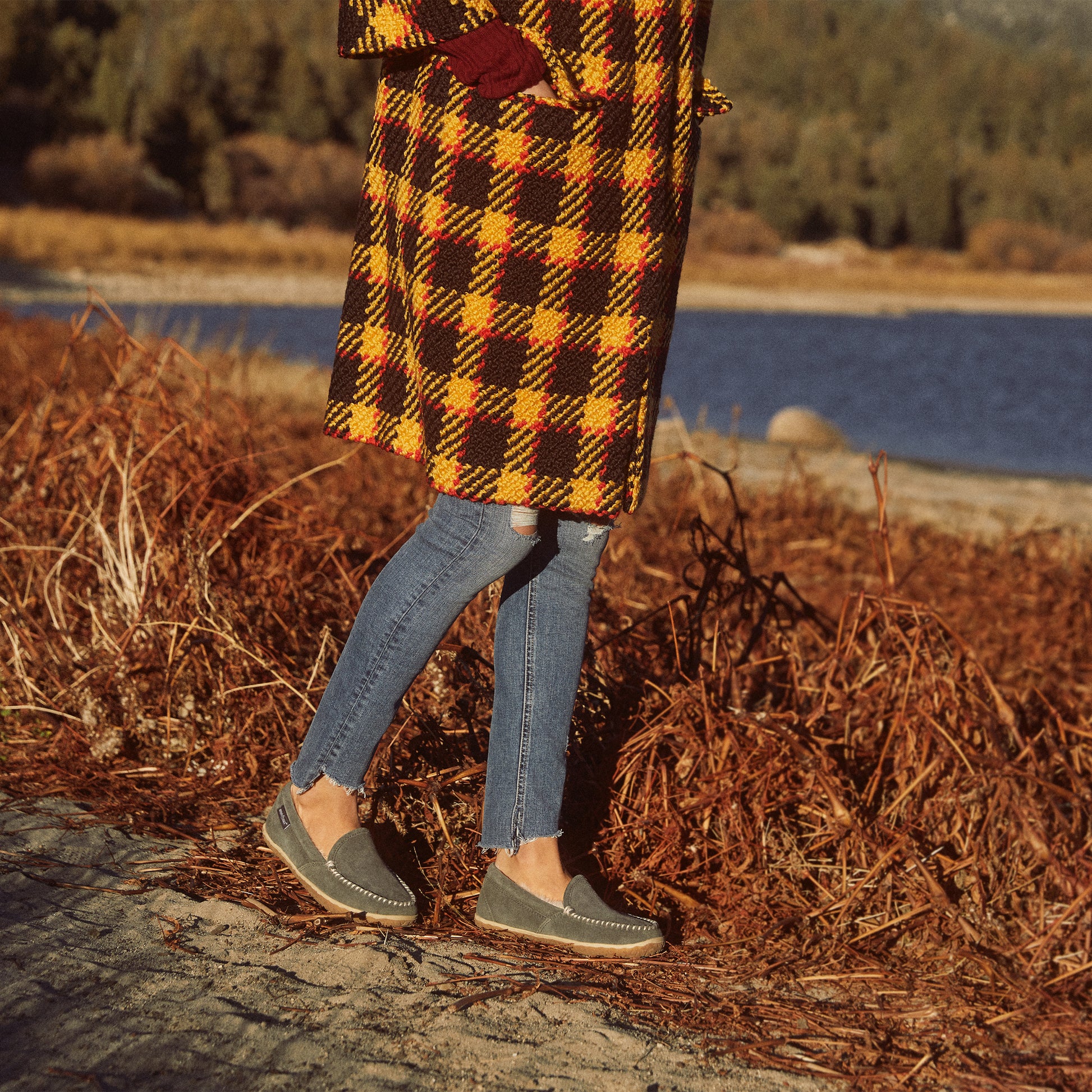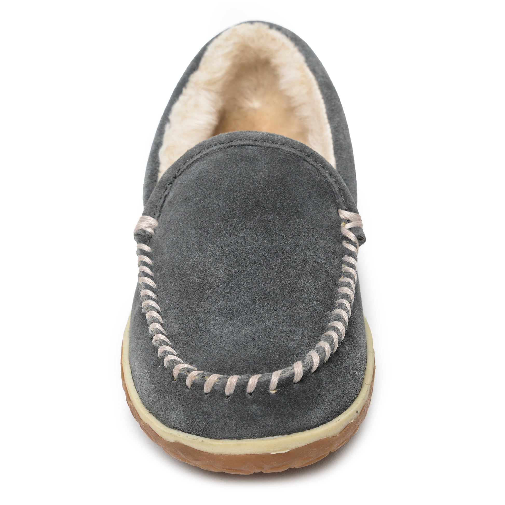 ふわふわのボアが足全体を包み込む、あたたかさ抜群のモカシンスリッパ。